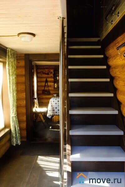 ?Лестница с подсветкой соединяет первый и второй этажи.